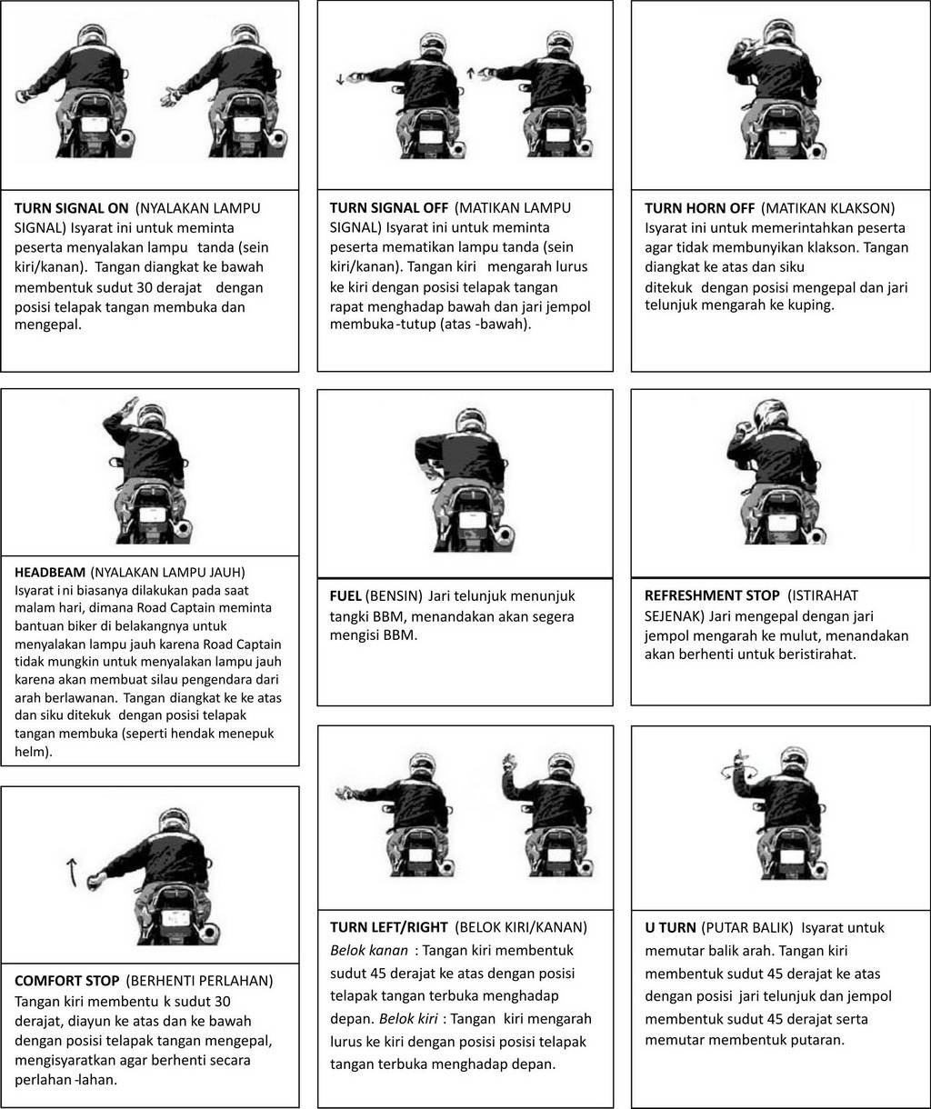 - Lima jari = konvoi bubar untuk kembali bergabung setelah melewati rintangan (macet)